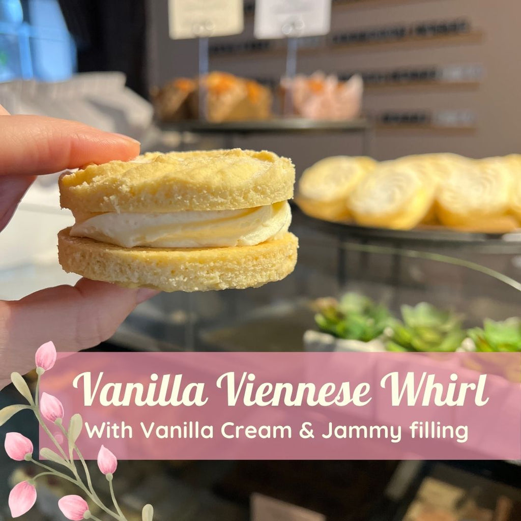 Vanilla Viennese Whirl with raspberry compote